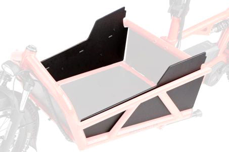 Pareti laterali basse in PP per Riese & Müller Load, leggere e resistenti. Design robusto e facile da pulire, ideali per un carico sicuro e organizzato.