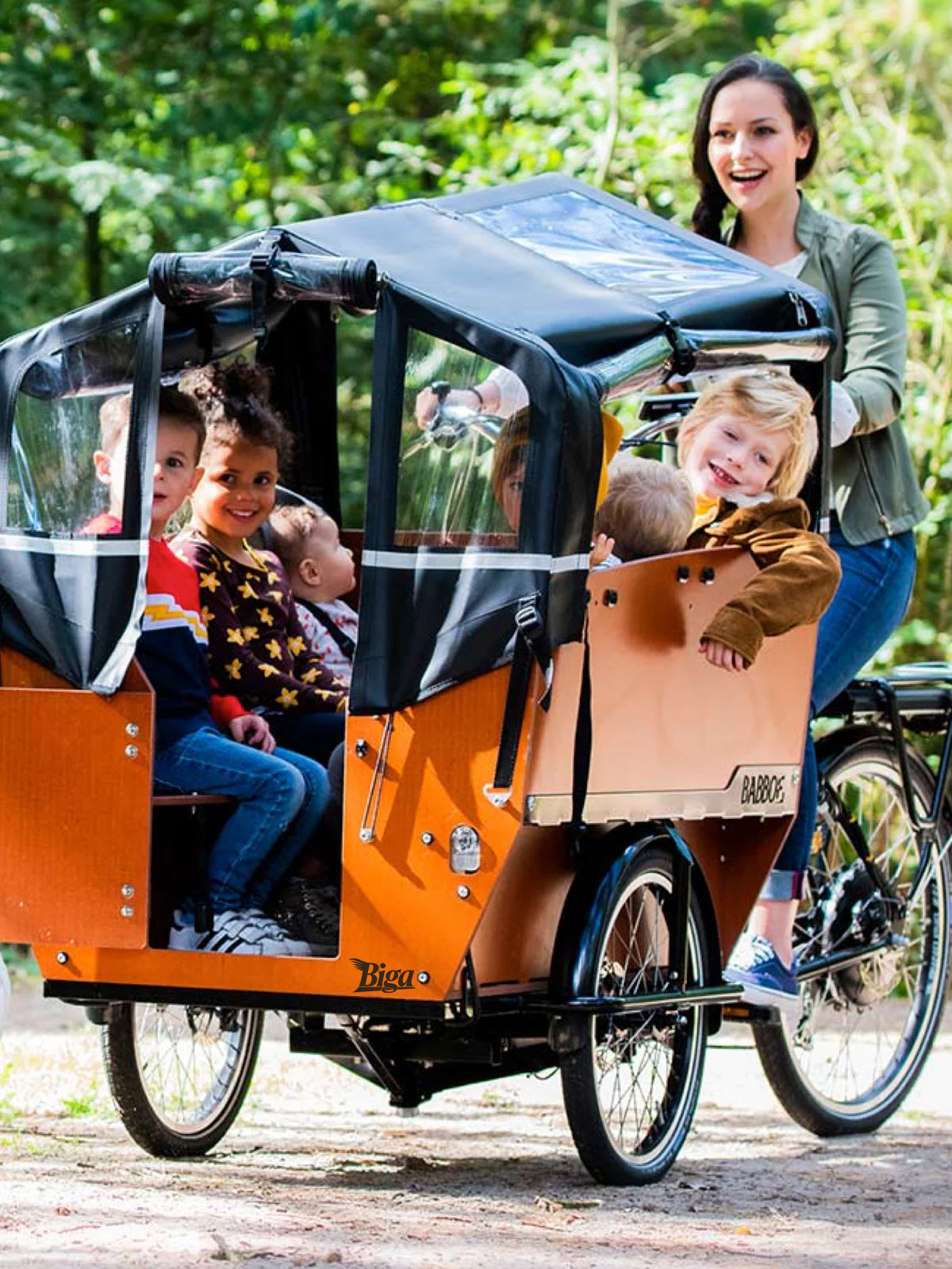 La Babboe Max-E è la prima bici da carico elettrica con spazio per 6 bambini.Perfetto per famiglie numerose, assistenza all'infanzia o asili nido.Rende il viaggio alla fattoria didattica, al parco giochi o al parco più facile ed emozionante!